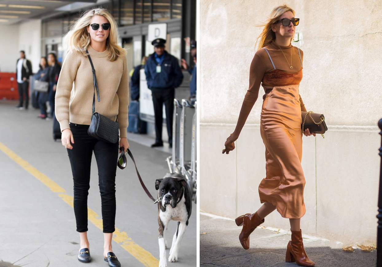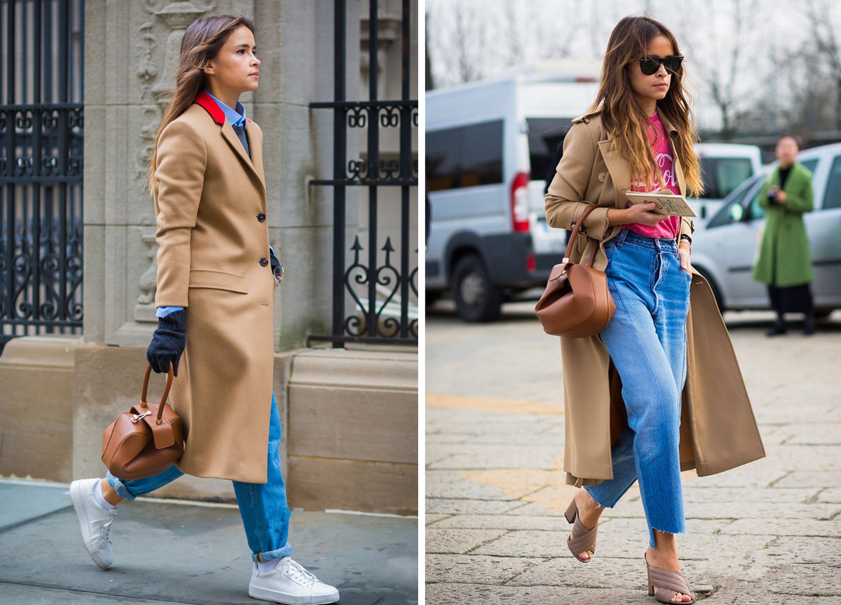 搭配的时候,身上也选择一款同色系的单品,可以和包包的颜色相呼应,让整体更加和谐。这两位博主都选择了用奶油棕色的大衣搭配牛仔裤,再加上奶油棕色的包包,让整个look都上升了质感。