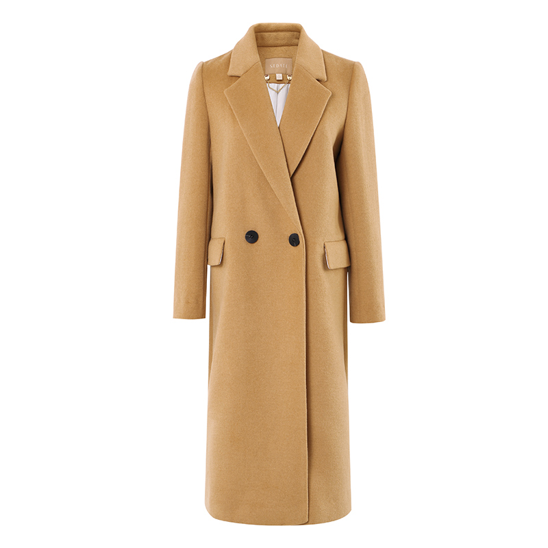 选用羊毛材质,采用双面制造的工艺,面料顺滑有光泽感,保暖力超强。长款的版型,挺拔的西装领设计,合身版型显得更加利落大气。
