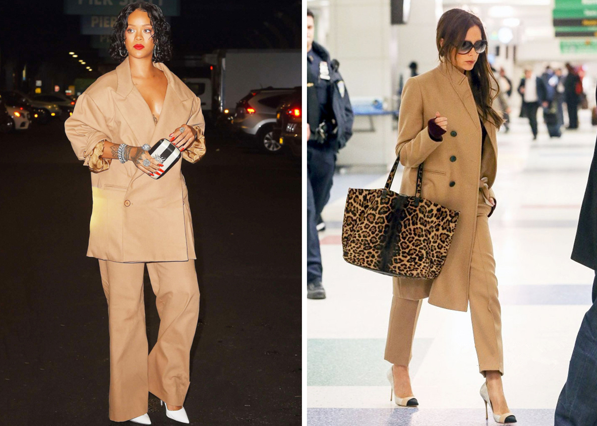 上装和下装选择同色系的奶油棕,也是很推荐的穿法,贝嫂和蕾哈娜都演绎过这样的look,搭配起来几乎无顾虑,一双尖头鞋就能让气场值加满。