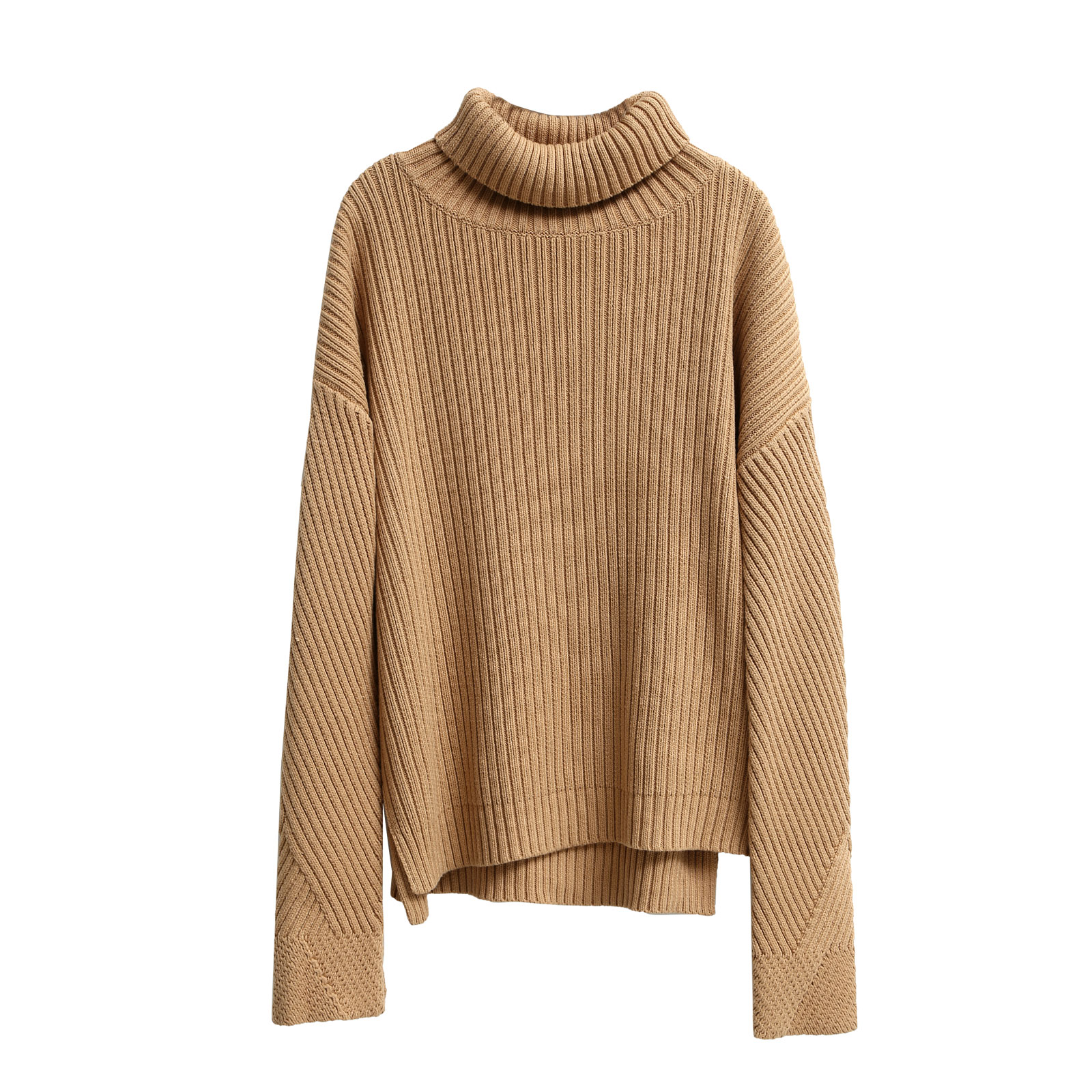 采用羊毛混纺的材质,手感软糯,有一定的厚度。宽松的落肩版型,相当修饰身材。袖子采用超长设计,再加上下摆开叉处理,时髦度满分。