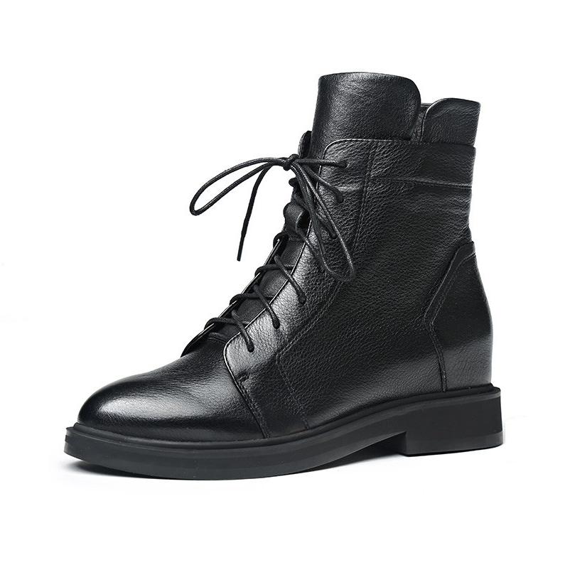 2017秋冬真皮系带马丁靴女英伦风短靴休闲平底单靴时尚中跟短靴子