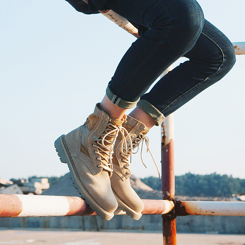 一款复古版型的马丁靴,给人一种非常时尚的感觉。鞋面与鞋底的位置拼接的十分严密,提升了这款鞋子的防水性能。让你穿起来感觉更加舒适。